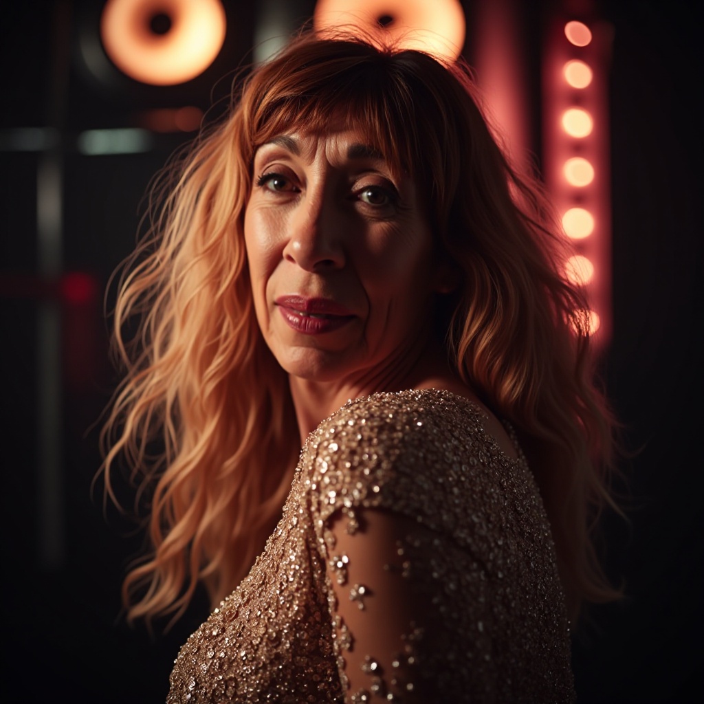 Seductive, intimate gaze, teasing yet enigmatic, inviting yet untouchable, exuding the confidence of a seasoned performer, eyes that tell a story of passion and mystery.